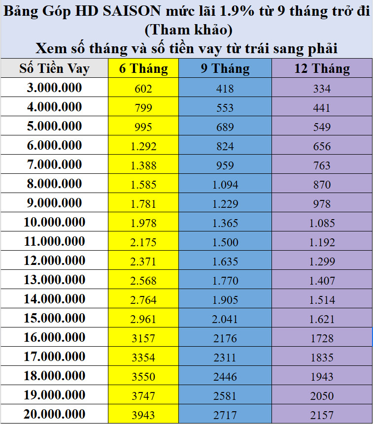 BẢNG GÓP CỦA NGÂN HÀNG HD SAISON